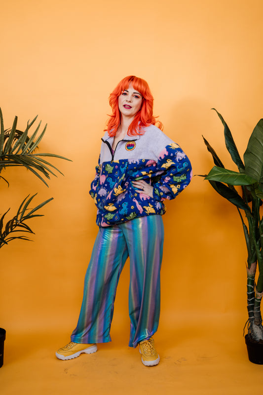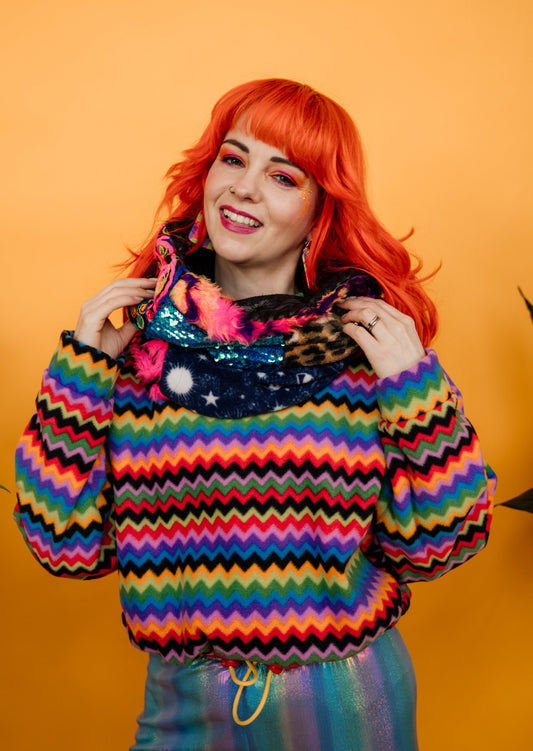 Full Zip Jumper in Rainbow Chevron and Green Teddy