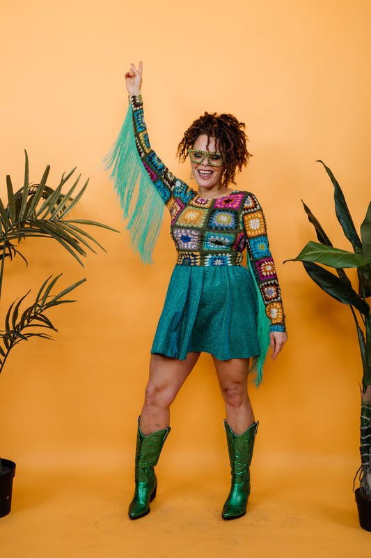 Fringe Crop Top in Green Granny Square Print + 1 Colour