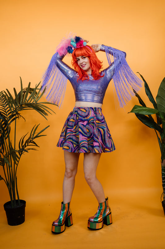 Fringe Crop Top in Lilac Shimmer