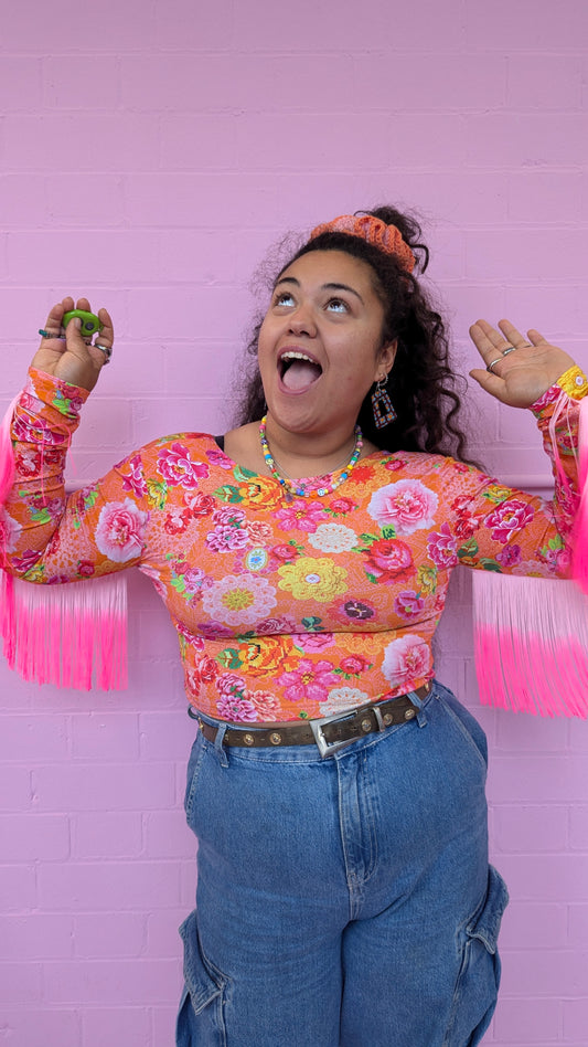 Fringe Crop Top in Orange Crochet + 1 Colour