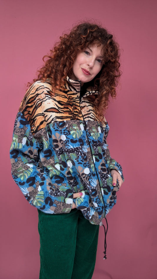 Full Zip Jumper in Leopards and Leaves Fleece and Tiger
