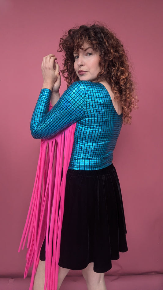 Mega Fringe Top in Blue