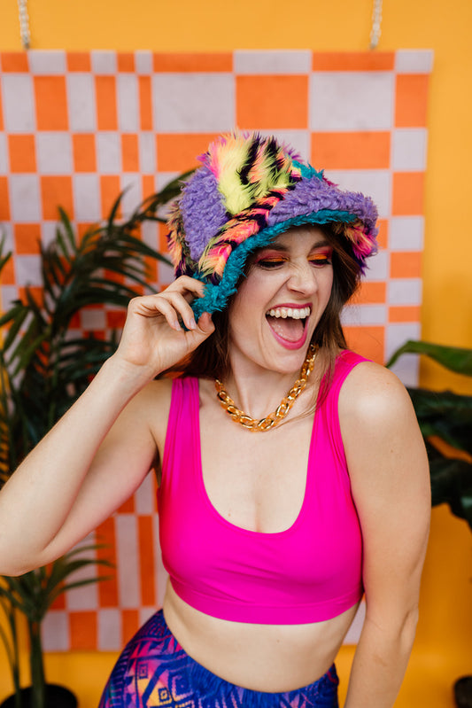 Zero Waste Patchwork Bucket Hat in Faux Fur