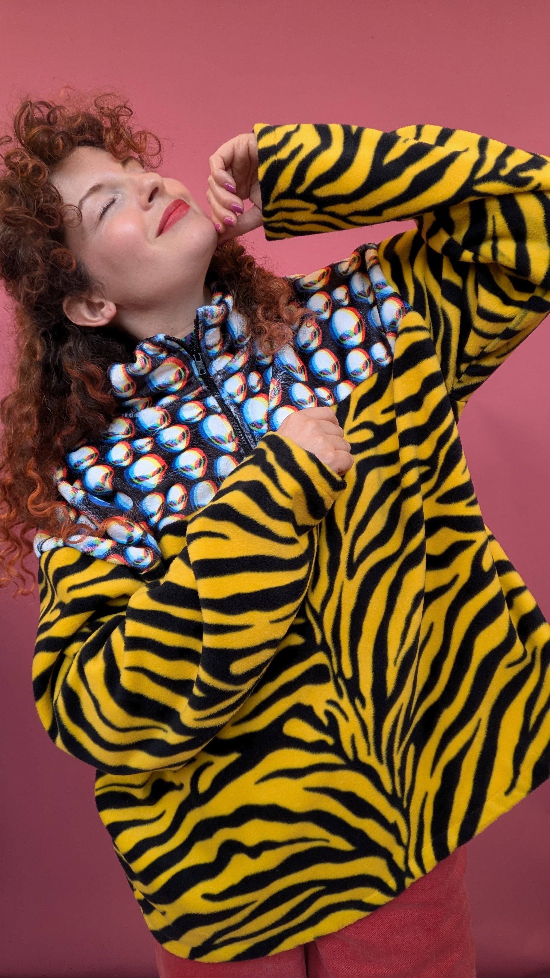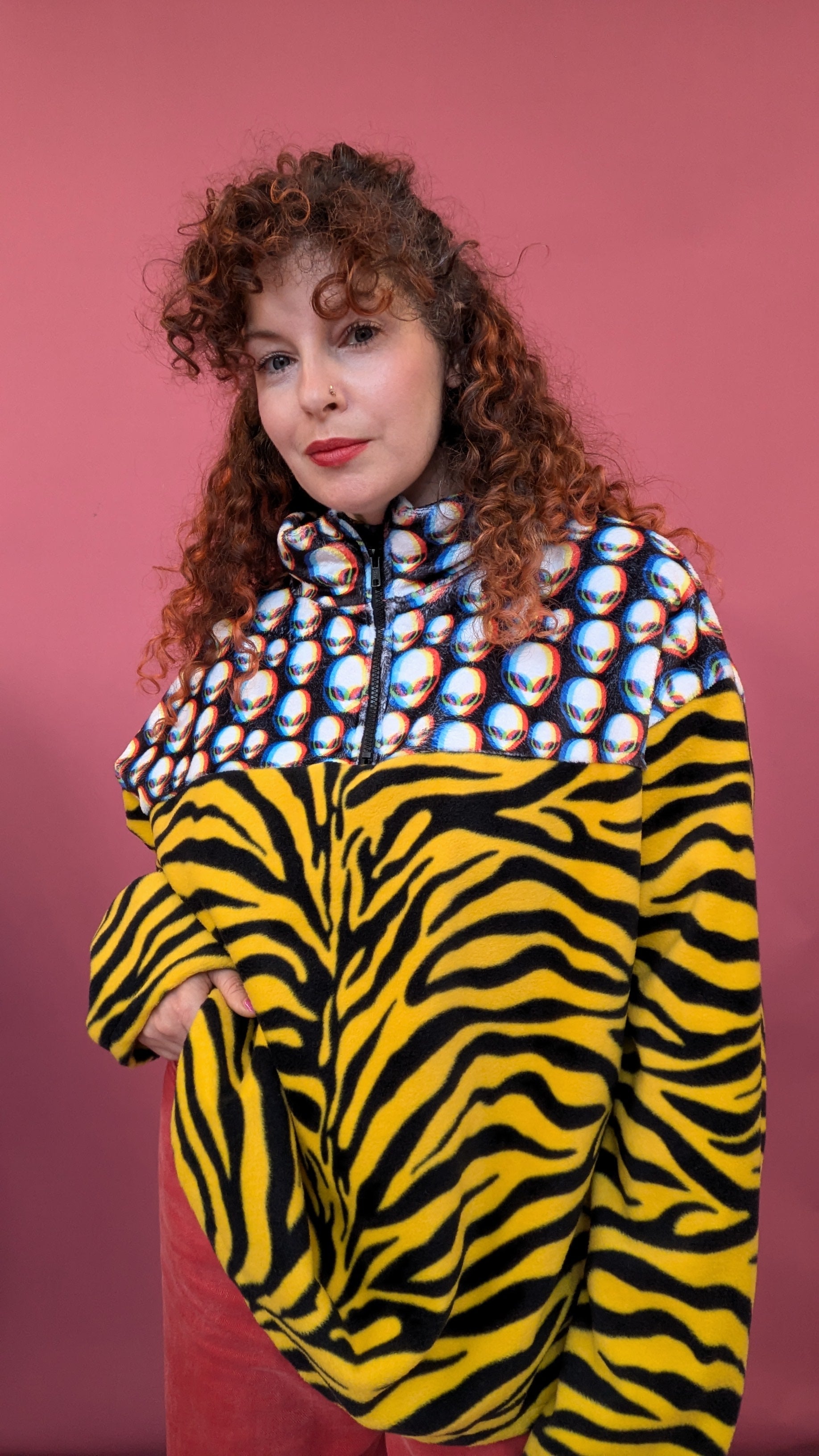 Half Zip Lite in Fuzzy Alien and Yellow Tiger