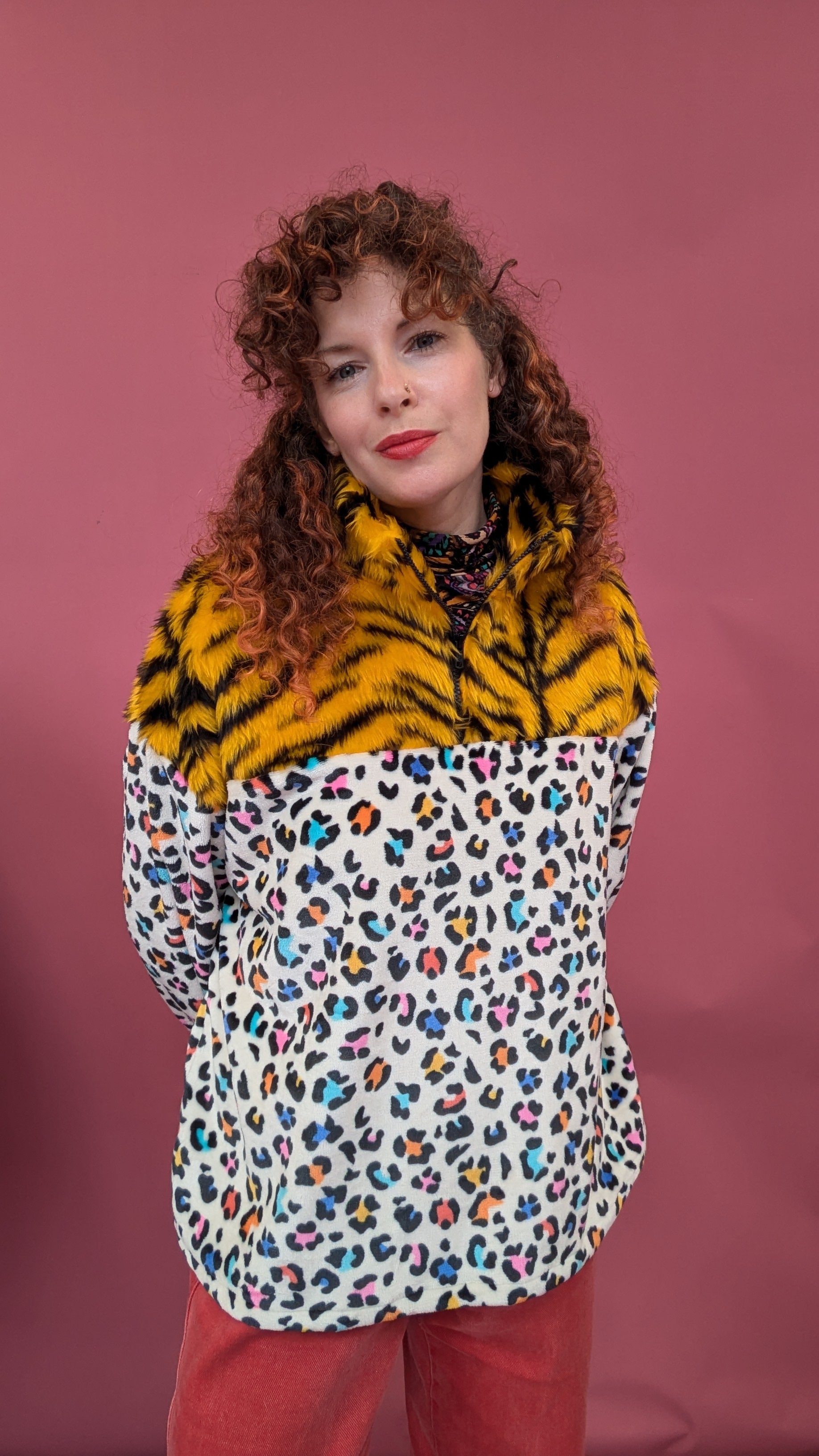 Half Zip Lite in Rainbow Leopard and Yellow Tiger