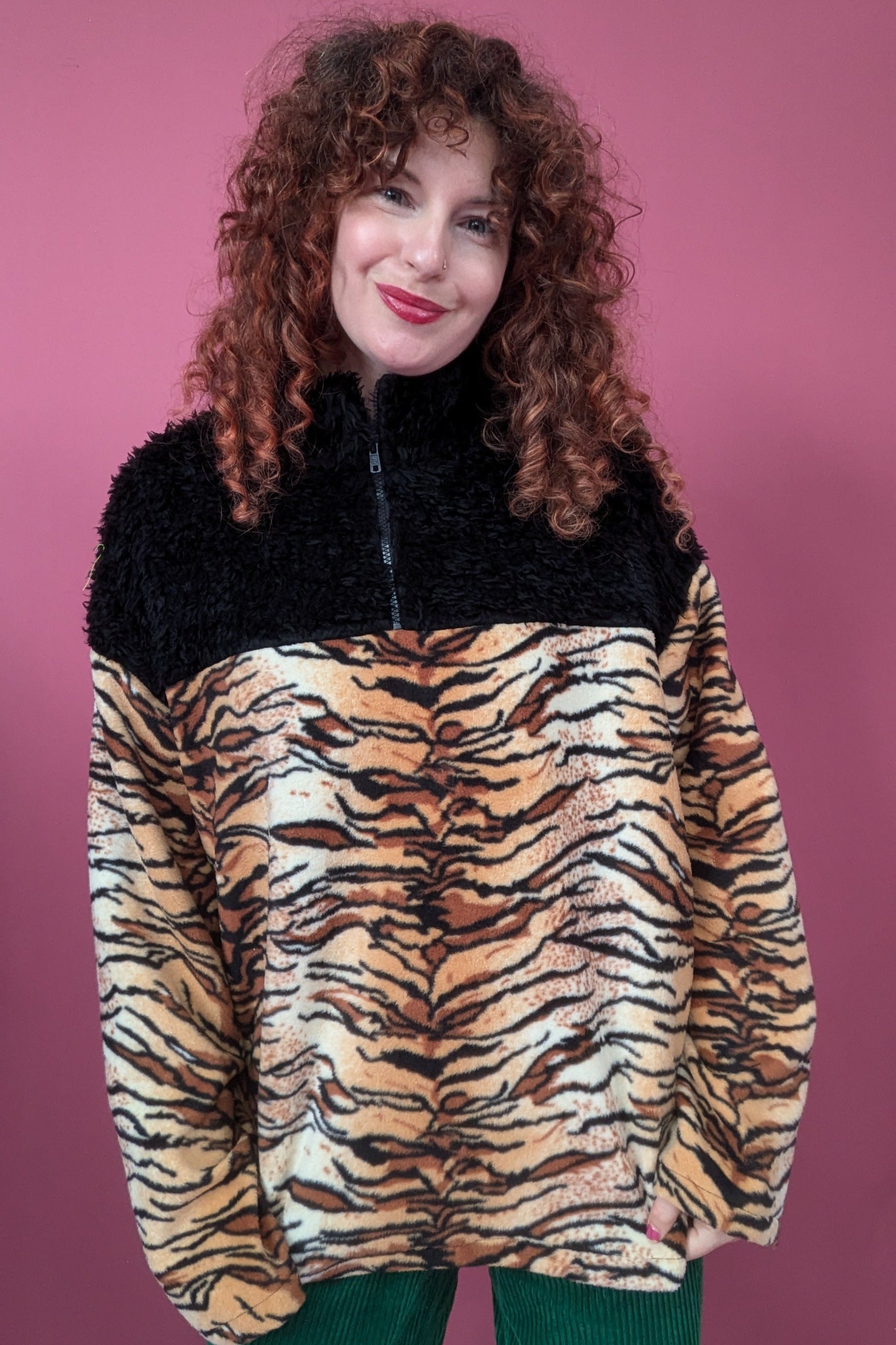 Half Zip Lite in Tiger Fleece with Black Teddy