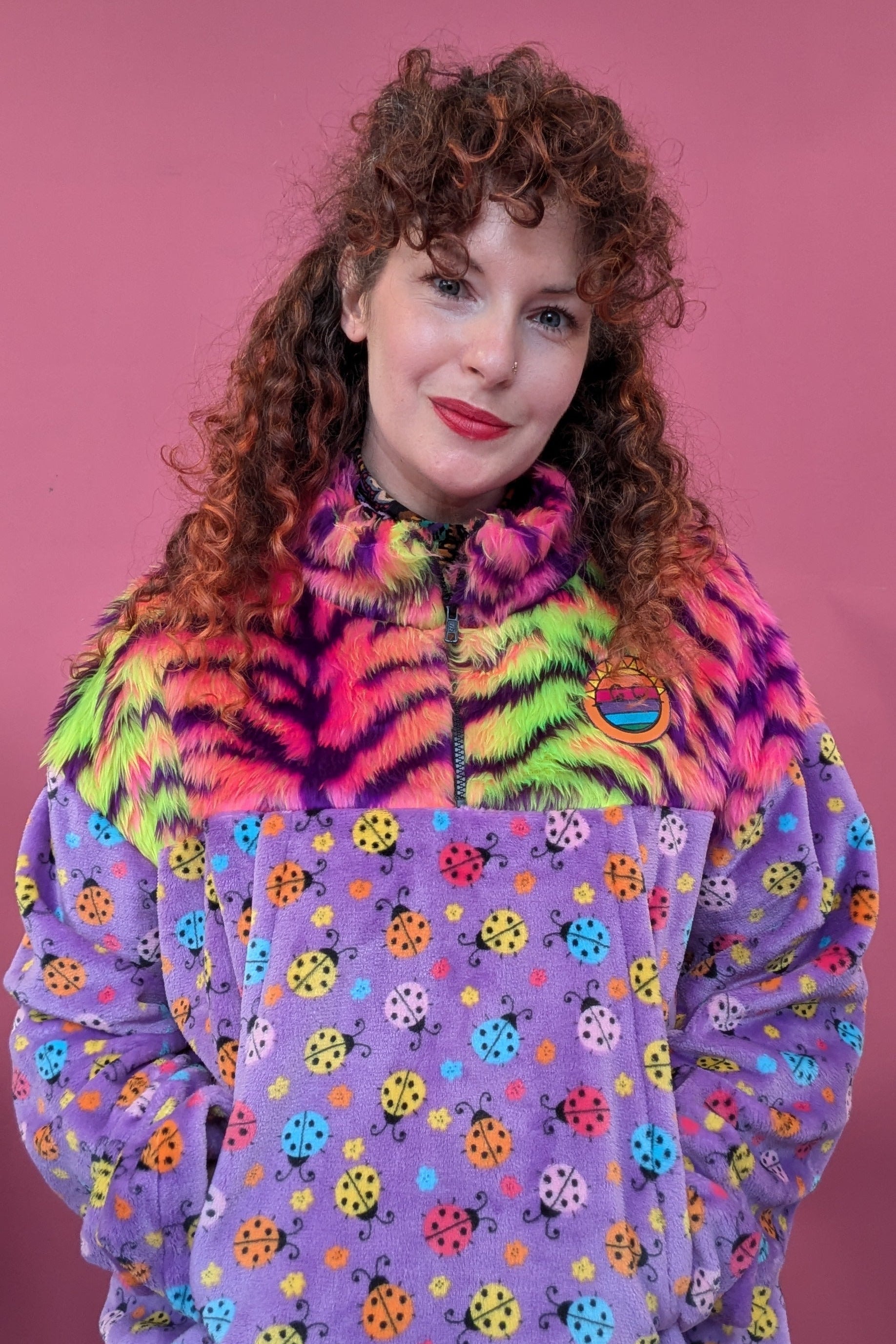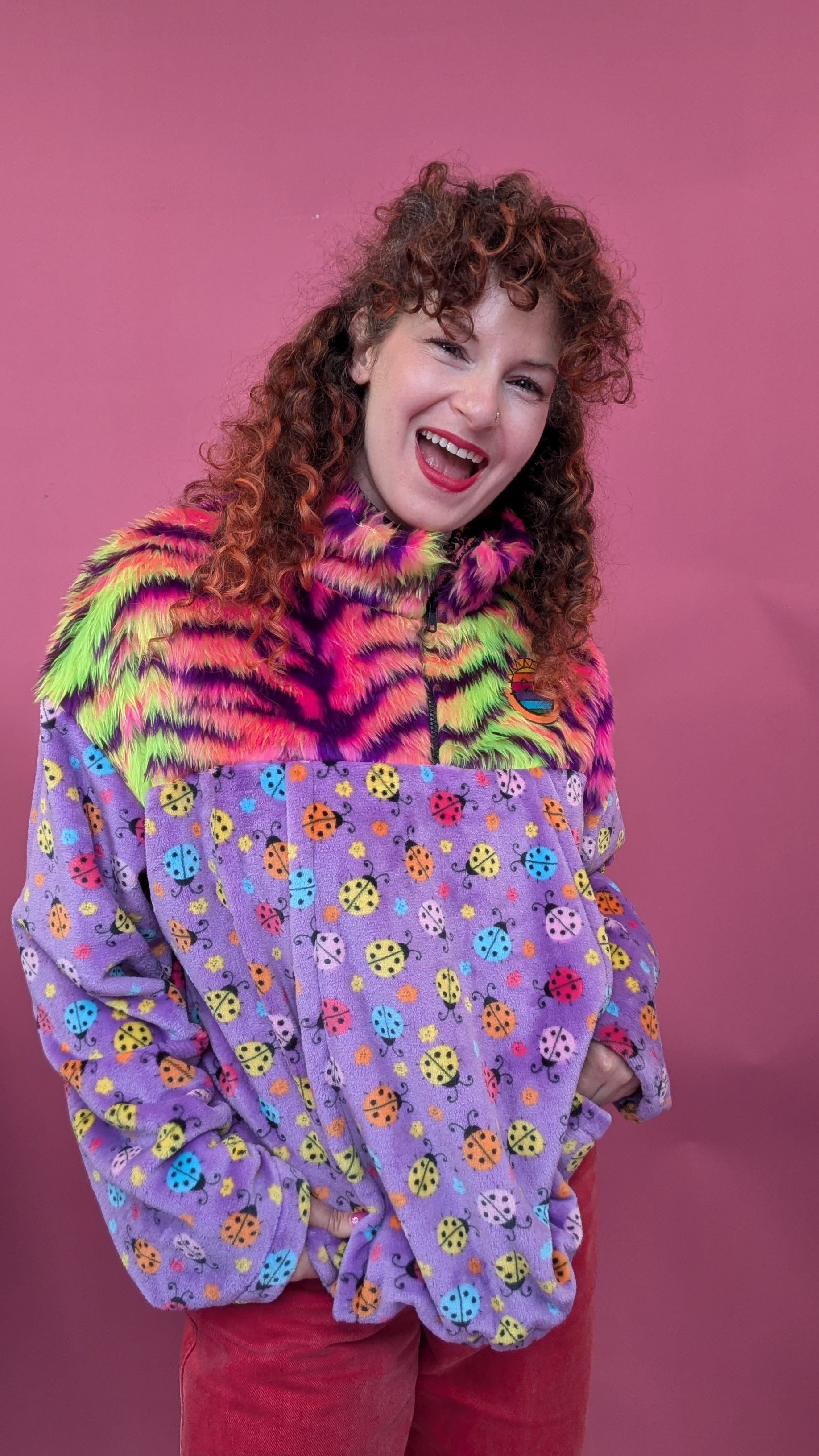 Super soft leopard fleece half zip with the most vibrant fluffy orange tiger yoke! Complete with patch and kangaroo pocket.