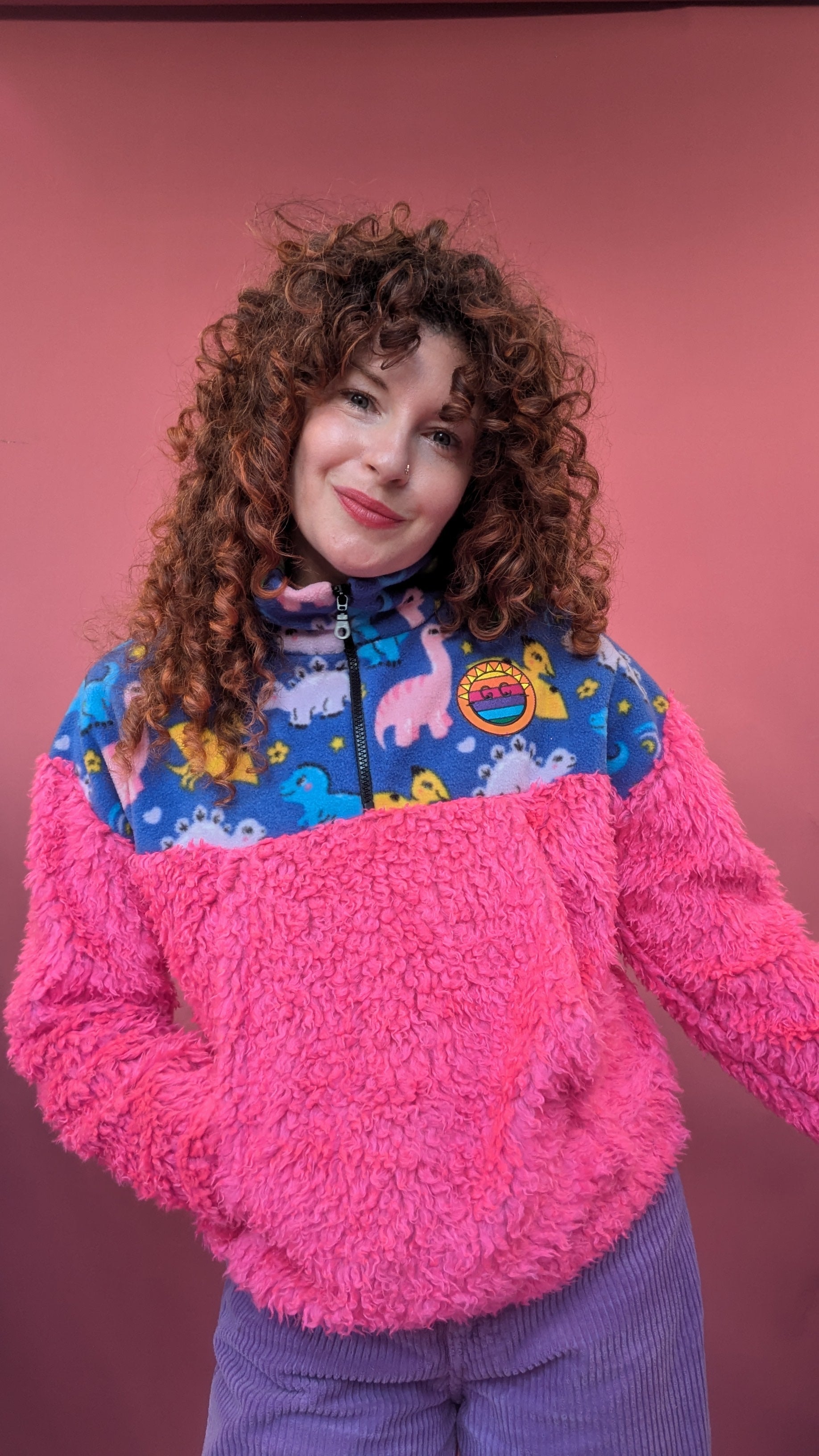 Half-Zip Pullover in Pink Teddy and Dino Fleece