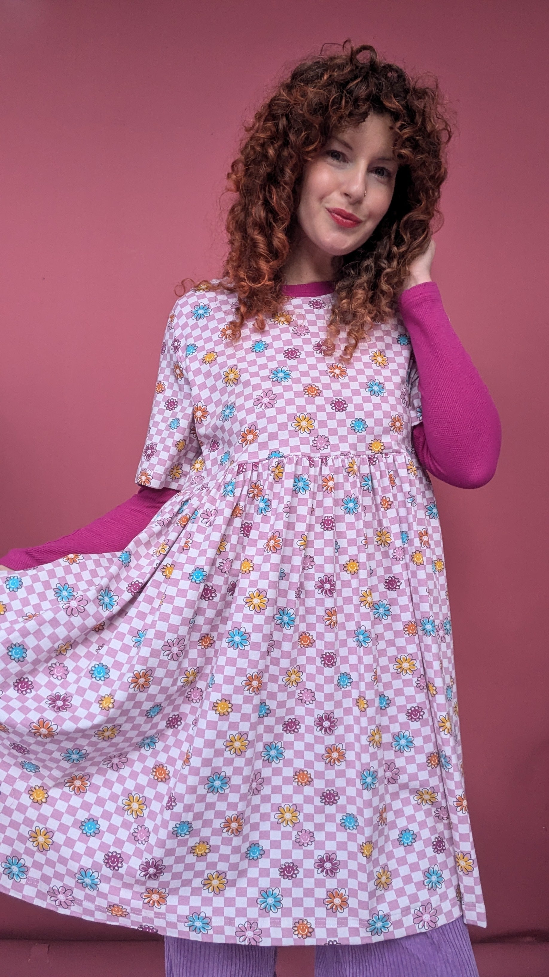 Jersey Smock Dress in Daisy Check
